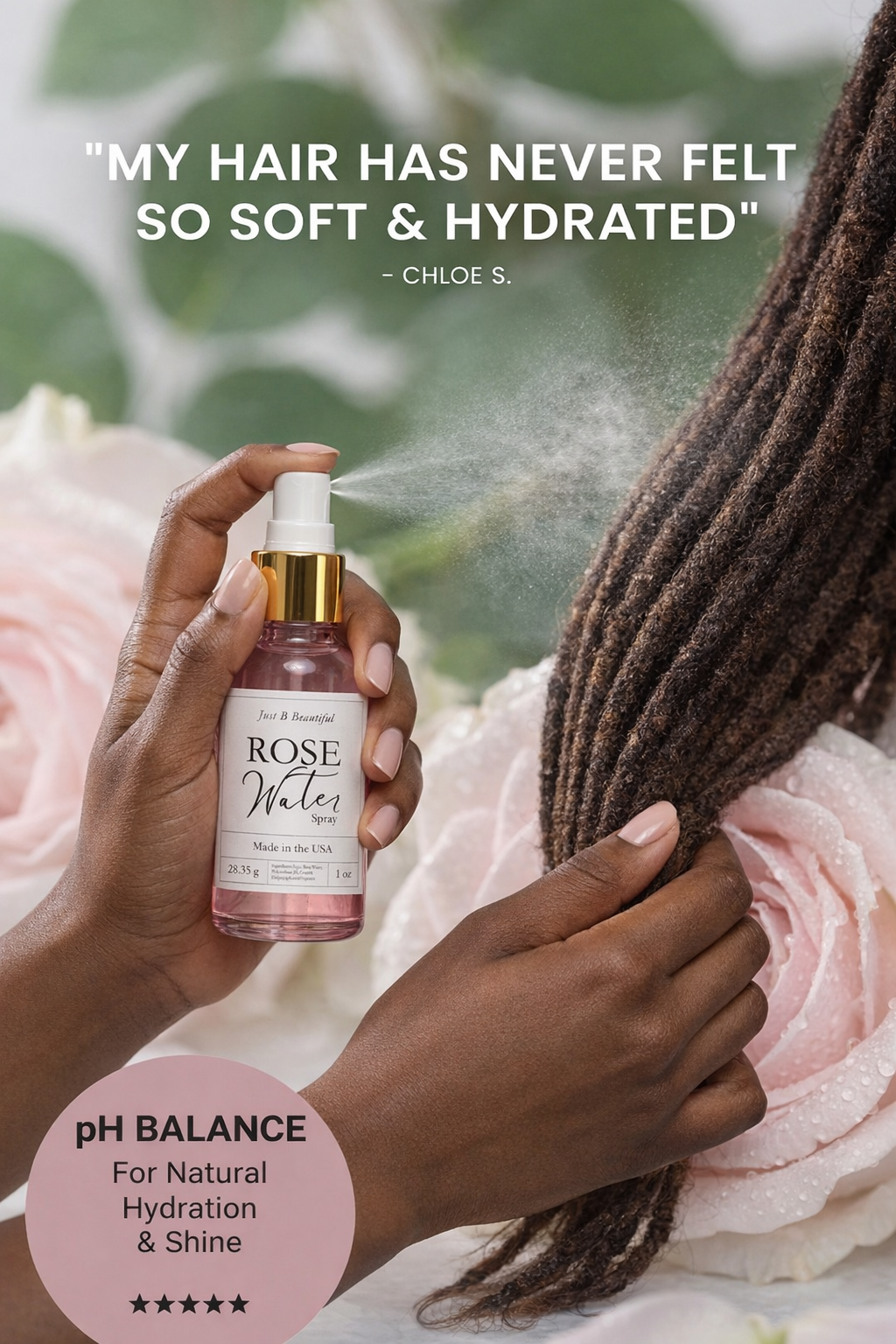Rose Water Spray by Just B Beautiful is more than just a hair treatment; it's a commitment to nurturing your hair with the best that nature has to offer. Suitable for daily use, our Rose Water Spray ensures your hair is always hydrated, healthy, and beautiful. Upgrade your hair care regimen today with this exquisite product and embrace the transformation towards better hair health.